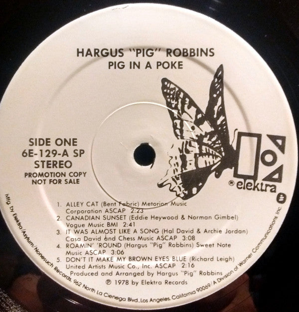 ARTIST: Hargus "Pig" Robbins LABEL: Elektra CAT: 6.0e-129 PRESSING: US YEAR: 1978 RPM: 33 FORMAT: 12 DISC/S: 1 GENRE: Folk STYLE: 0 COVER CONDITION: VG+ VINYL CONDITION: VG+ USED OR NEW: Secondhand