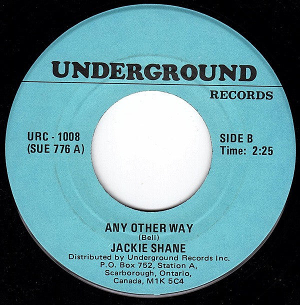 ARTIST: Jackie Shane LABEL: Underground Records CAT: URC-1008 PRESSING: Canada YEAR: 0 RPM: 45 FORMAT: 7 DISC/S: 1 GENRE: Funk/SoulSoul STYLE: 0 COVER CONDITION: Generic VINYL CONDITION: VG- USED OR NEW: Secondhand
