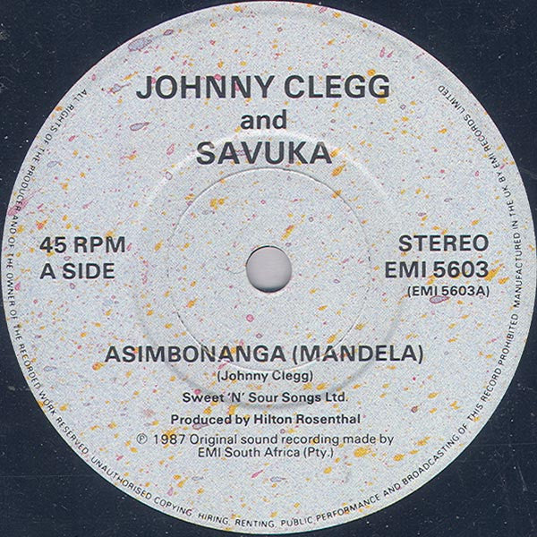 ARTIST: Johnny Clegg And Savuka LABEL: EMI CAT: EMI 5603 PRESSING: UK YEAR: 1987 RPM: 45 FORMAT: 12 DISC/S: 1 GENRE: FolkReggae STYLE: Folk COVER CONDITION: VG+ VINYL CONDITION: VG+ USED OR NEW: Secondhand