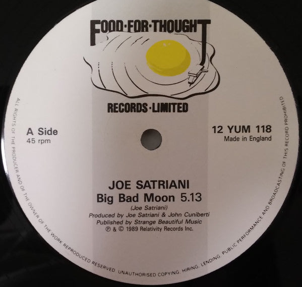 ARTIST: Joe Satriani LABEL: Food For Thoughtb Records CAT: 12 YUM 118 PRESSING: UK YEAR: 1989 RPM: 45 FORMAT: 12 DISC/S: 1 GENRE: Hard RockRock STYLE: Hard Rock COVER CONDITION: VG VINYL CONDITION: VG USED OR NEW: Secondhand