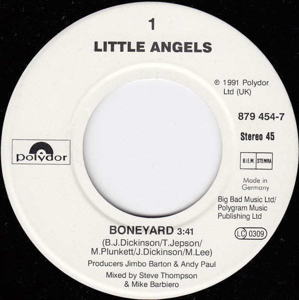 ARTIST: Little Angels LABEL: Polydor CAT: 879 454-7 PRESSING: Europe YEAR: 1991 RPM: 45 FORMAT: 7 DISC/S: 1 GENRE: Hard RockRock STYLE: Hard Rock COVER CONDITION: VG+ VINYL CONDITION: VG+ USED OR NEW: New