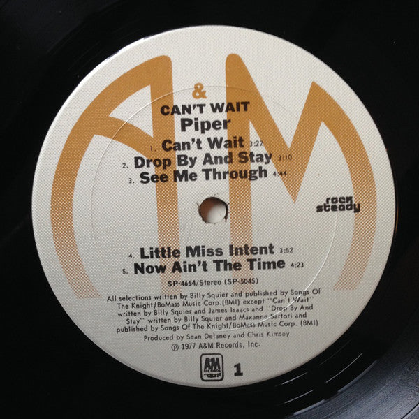 ARTIST: Piper LABEL: A & M Records CAT: SP 4654 PRESSING: US YEAR: 1977 RPM: 33 FORMAT: 12 DISC/S: 1 GENRE: Rock STYLE: COVER CONDITION: VG+ VINYL CONDITION: VG+ USED OR NEW: Secondhand