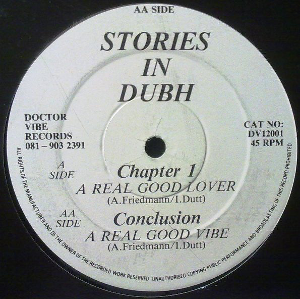 ARTIST: Stories In Dubh LABEL: Doctor Vibe records CAT: DV12001 PRESSING: UK YEAR: 1992 RPM: 45 FORMAT: 12 DISC/S: 1 GENRE: ElectronicaHouse STYLE: House COVER CONDITION: Generic VINYL CONDITION: NM USED OR NEW: Secondhand