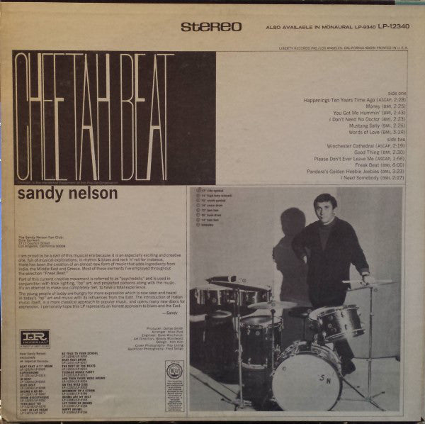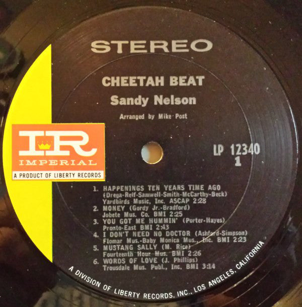 ARTIST: Sandy Nelson LABEL: Imperial CAT: LP 12340 PRESSING: US YEAR: 1967 RPM: 33 FORMAT: 12 DISC/S: 1 GENRE: PsychedelicRock STYLE: Psychedelic COVER CONDITION: G+ VINYL CONDITION: G+ USED OR NEW: Secondhand