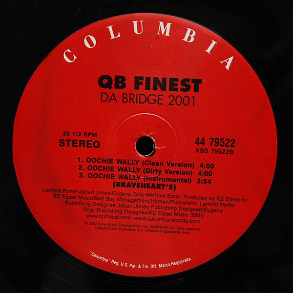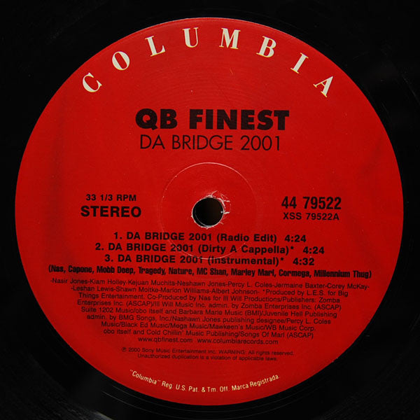ARTIST: QB Finest LABEL: Columbia CAT: 44 79522 PRESSING: US YEAR: 2000 RPM: 33 FORMAT: 12 DISC/S: 1 GENRE: Hip Hop STYLE: COVER CONDITION: VG++ VINYL CONDITION: VG+ USED OR NEW: Secondhand