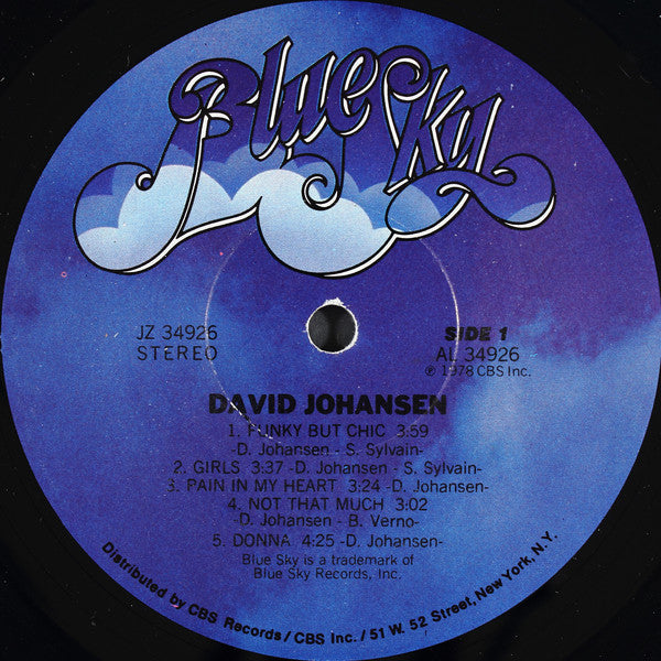 ARTIST: David Johansen LABEL: Blue Sky CAT: JZ 34926 PRESSING: US YEAR: 1978 RPM: 33 FORMAT: 12 DISC/S: 1 GENRE: Rock STYLE: 0 COVER CONDITION: VG- VINYL CONDITION: VG- USED OR NEW: Secondhand
