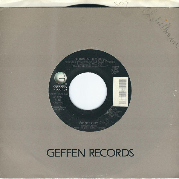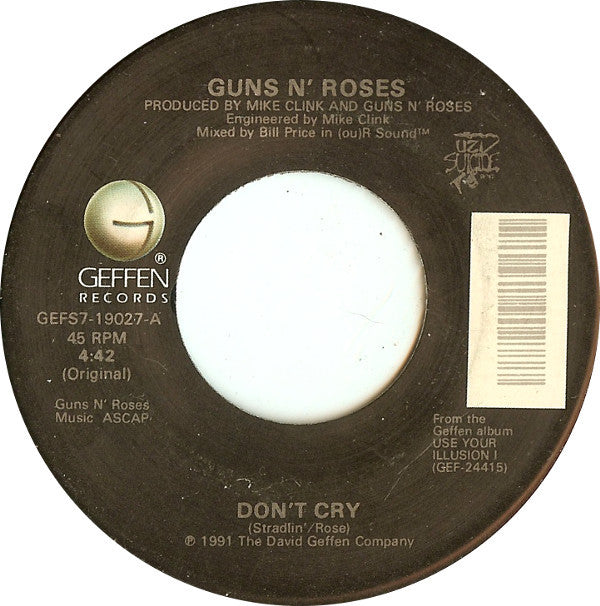 ARTIST: Guns N' Roses LABEL: Geffen CAT: GefS7-19027 PRESSING: US YEAR: 1991 RPM: 45 FORMAT: 7 DISC/S: 1 GENRE: Hard RockRock STYLE: Hard Rock COVER CONDITION: Generic VINYL CONDITION: VG- USED OR NEW: Secondhand