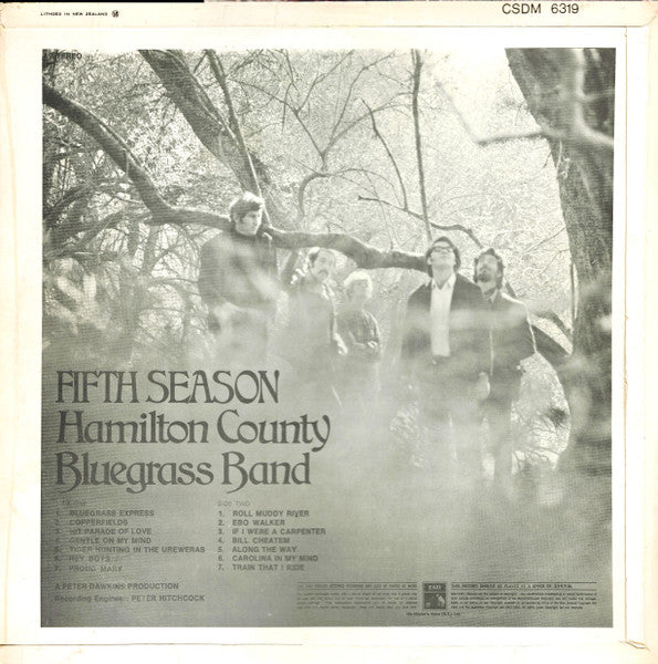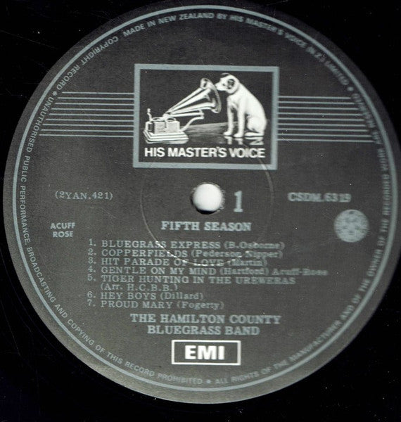 ARTIST: Hamilton County Bluegrass Band LABEL: His Masters Voice CAT: CSDM 6319 PRESSING: NZ YEAR: 1970 RPM: 33 FORMAT: 12 DISC/S: 1 GENRE: FolkKiwi Music STYLE: Kiwi Music COVER CONDITION: VG+ VINYL CONDITION: VG+ USED OR NEW: Secondhand