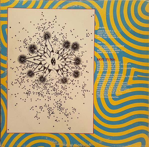 ARTIST: Hot Tuna LABEL: RCA CAT: LSP 4550 PRESSING: US YEAR: 1971 RPM: 33 FORMAT: 12 DISC/S: 1 GENRE: Blues RockRock STYLE: Blues Rock COVER CONDITION: VG VINYL CONDITION: VG+ USED OR NEW: Secondhand