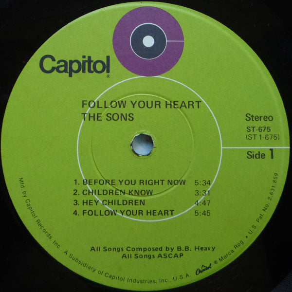 ARTIST: The Sons LABEL: Capitol CAT: ST-675 PRESSING: US YEAR: 1971 RPM: 33 FORMAT: 12 DISC/S: 1 GENRE: Jazz STYLE: 0 COVER CONDITION: VG+ VINYL CONDITION: VG+ USED OR NEW: Secondhand