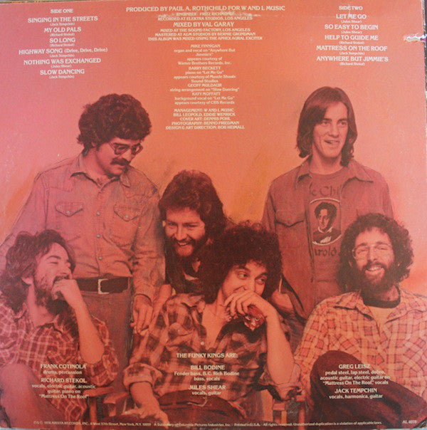 ARTIST: Funky Kings LABEL: Arista CAT: AL 4078 PRESSING: US YEAR: 1976 RPM: 33 FORMAT: 12 DISC/S: 1 GENRE: Rock STYLE: COVER CONDITION: VG++ VINYL CONDITION: VG++ USED OR NEW: Secondhand