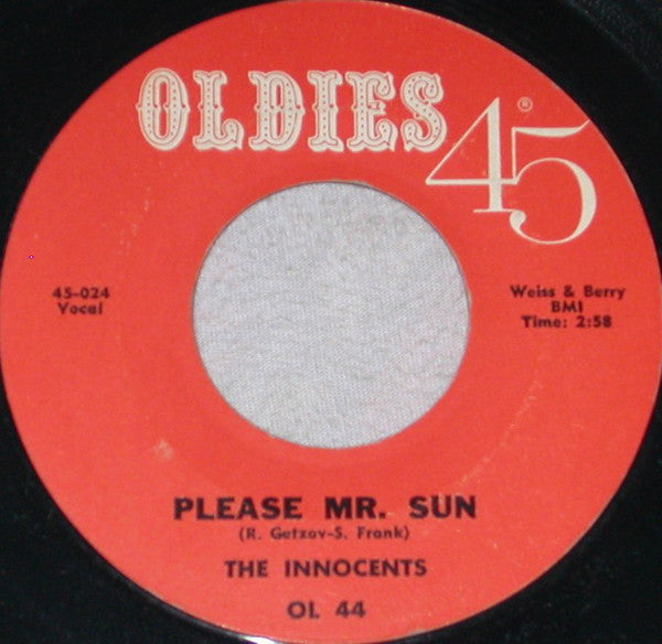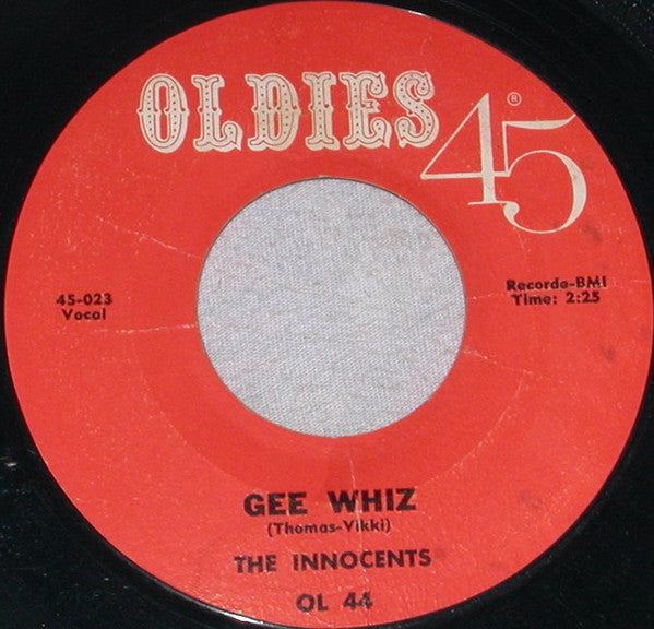 ARTIST: The Innocents LABEL: Oldies 45 CAT: OL 44 PRESSING: US YEAR: 1963 RPM: 45 FORMAT: 7 DISC/S: 1 GENRE: Pop STYLE: 0 COVER CONDITION: Generic VINYL CONDITION: NM USED OR NEW: Secondhand