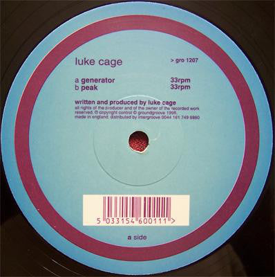 ARTIST: Luke Cage LABEL: Ground Groove CAT: GRO 1207 PRESSING: UK YEAR: 1996 RPM: 33 FORMAT: 12 DISC/S: 1 GENRE: ElectronicaTrance STYLE: Trance COVER CONDITION: VG+ VINYL CONDITION: NM USED OR NEW: Secondhand