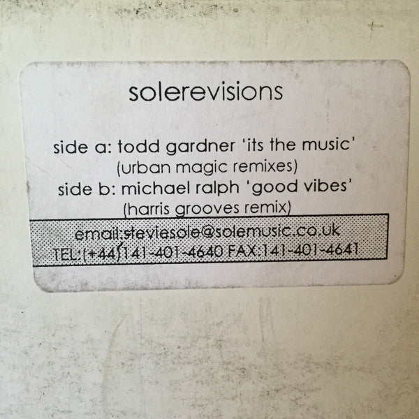 ARTIST: Michael Ralph / Todd Gardner LABEL: Tronicsole CAT: SOLE027 PRESSING: UK YEAR: RPM: 33 FORMAT: 12 DISC/S: 1 GENRE: ElectronicaHouse STYLE: House COVER CONDITION: Generic VINYL CONDITION: VG+ USED OR NEW: Secondhand