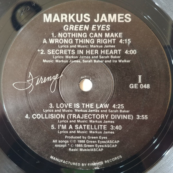 ARTIST: Markus James LABEL: Firenze Records CAT: GE 048 PRESSING: US YEAR: 1988 RPM: 33 FORMAT: 12 DISC/S: 1 GENRE: Classic RockRock STYLE: Classic Rock COVER CONDITION: VG+ VINYL CONDITION: NM USED OR NEW: Secondhand