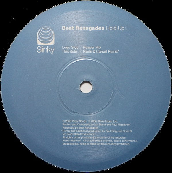 ARTIST: Beat Renegades LABEL: Slinky CAT: SLINKY005 PRESSING: UK YEAR: 2000 RPM: 45 FORMAT: 12 DISC/S: 1 GENRE: ElectronicaHard House STYLE: Hard House COVER CONDITION: NM VINYL CONDITION: VG+ USED OR NEW: Secondhand