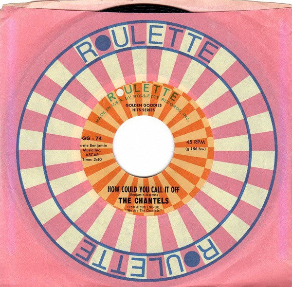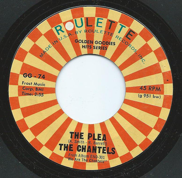 ARTIST: The Chantels LABEL: Roulette CAT: GG-74 PRESSING: US YEAR: 1972 RPM: 45 FORMAT: 7 DISC/S: 1 GENRE: Funk/SoulSoul STYLE: Soul COVER CONDITION: Generic VINYL CONDITION: VG+ USED OR NEW: Secondhand