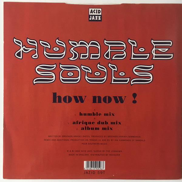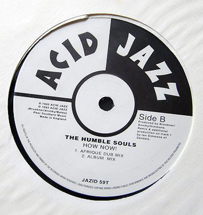 ARTIST: Humble Souls LABEL: Acid Jazz CAT: JAZID 59T PRESSING: UK YEAR: 1993 RPM: 33 FORMAT: 12 DISC/S: 1 GENRE: Acid JazzElectronica STYLE: Acid Jazz COVER CONDITION: VG+ VINYL CONDITION: VG+ USED OR NEW: Secondhand