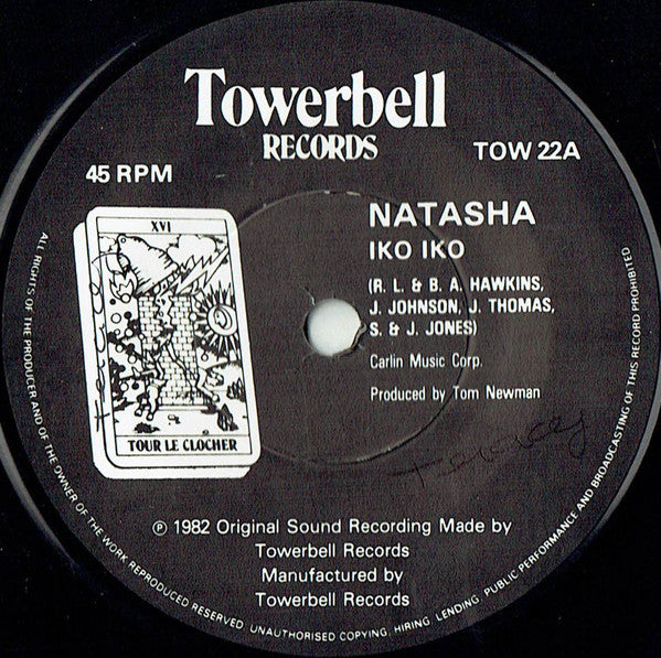 ARTIST: Natasha LABEL: Towerbell Records CAT: TOW 22A PRESSING: UK YEAR: 1982 RPM: 45 FORMAT: 7 DISC/S: 1 GENRE: PopRock STYLE: Pop COVER CONDITION: Generic VINYL CONDITION: VG USED OR NEW: Secondhand