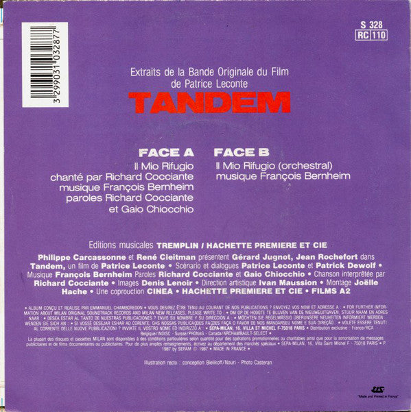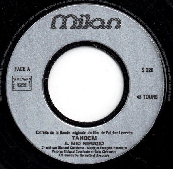 ARTIST: Richard Cocciante LABEL: Milan CAT: S 328 PRESSING: France YEAR: 1987 RPM: 45 FORMAT: 7 DISC/S: 1 GENRE: Soundtrack STYLE: 0 COVER CONDITION: VG+ VINYL CONDITION: VG+ USED OR NEW: Secondhand