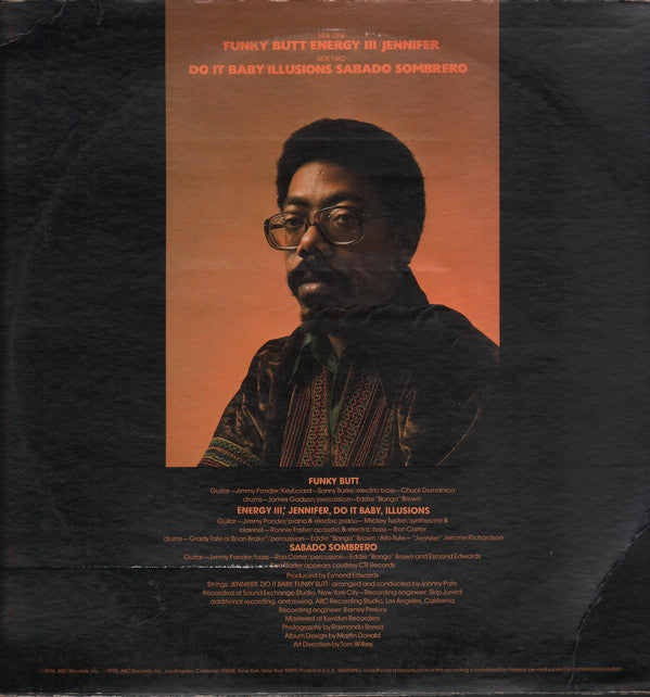 ARTIST: Jimmy Ponder LABEL: ABC Impulse! CAT: ASAD-9313 PRESSING: US YEAR: 1976 RPM: 33 FORMAT: 12 DISC/S: 1 GENRE: Funk/SoulJazz STYLE: Funk/Soul COVER CONDITION: VG+ VINYL CONDITION: VG++ USED OR NEW: Secondhand