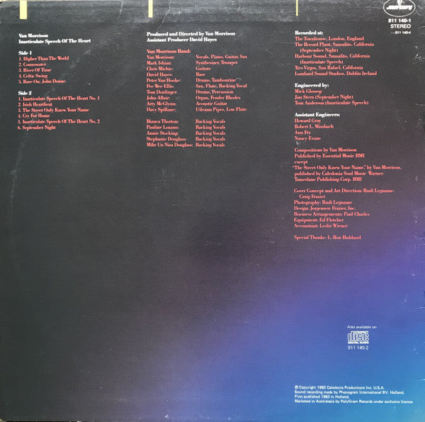 ARTIST: Van Morrison LABEL: Mercury CAT: 811 140-1 PRESSING: Australia YEAR: 1983 RPM: 33 FORMAT: 12 DISC/S: 1 GENRE: JazzRock STYLE: Jazz COVER CONDITION: VG++ VINYL CONDITION: NM USED OR NEW: Secondhand