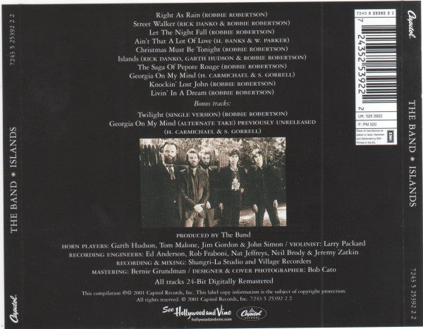 ARTIST: The Band LABEL: Capitol Records CAT: 7243 5 25392 2 2 PRESSING: UK YEAR: 2001 RPM: 0 FORMAT: CD DISC/S: 1 GENRE: Rock STYLE: 0 COVER CONDITION: Generic VINYL CONDITION: VG+ USED OR NEW: Secondhand