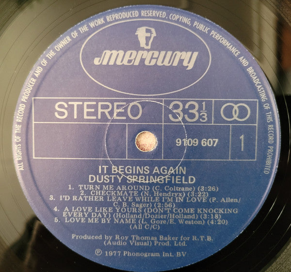 ARTIST: Dusty Springfield LABEL: Mercury CAT: 9109 607 PRESSING: NZ YEAR: 1978 RPM: 33 FORMAT: 12 DISC/S: 1 GENRE: Funk/SoulPop STYLE: Pop COVER CONDITION: VG++ VINYL CONDITION: VG++ USED OR NEW: Secondhand