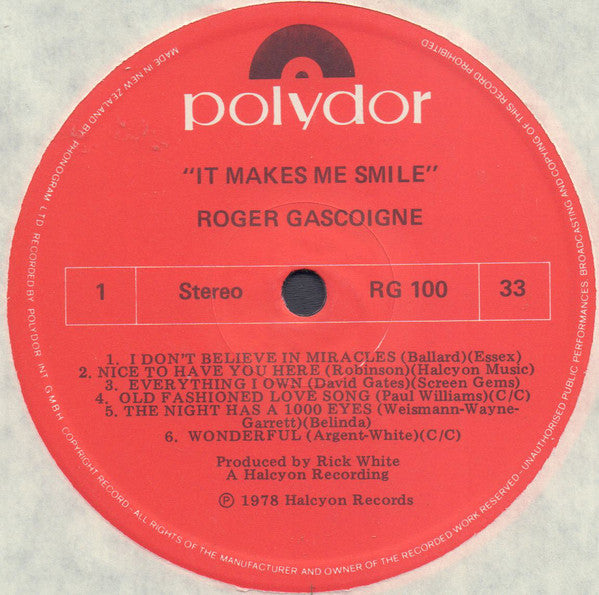 ARTIST: Roger Gascoigne LABEL: Polygram CAT: RG 100 PRESSING: NZ YEAR: 1978 RPM: 33 FORMAT: 12 DISC/S: 1 GENRE: Kiwi MusicPop STYLE: 0 COVER CONDITION: G+ VINYL CONDITION: VG+ USED OR NEW: Secondhand