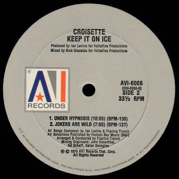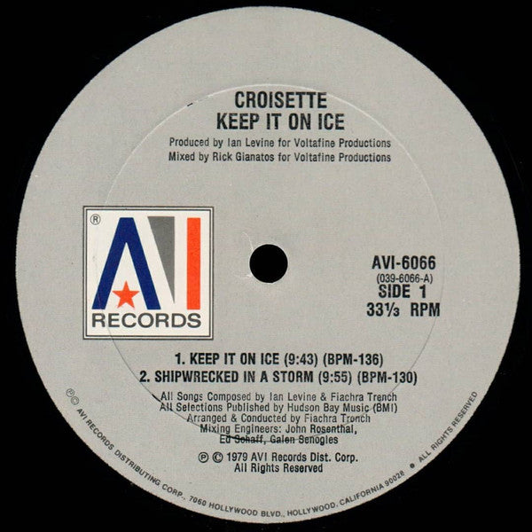 ARTIST: Croisette LABEL: AVI Records CAT: AVI-6066 PRESSING: US YEAR: 1979 RPM: 33 FORMAT: 12 DISC/S: 1 GENRE: Funk/Soul STYLE: COVER CONDITION: NM- VINYL CONDITION: VG++ USED OR NEW: Secondhand