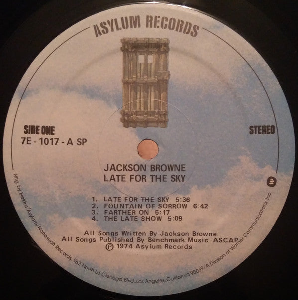 ARTIST: Jackson Browne LABEL: Asylum CAT: 7E-1017 PRESSING: US YEAR: 1974 RPM: 33 FORMAT: 12 DISC/S: 1 GENRE: Rock STYLE: COVER CONDITION: VG+ VINYL CONDITION: VG++ USED OR NEW: Secondhand