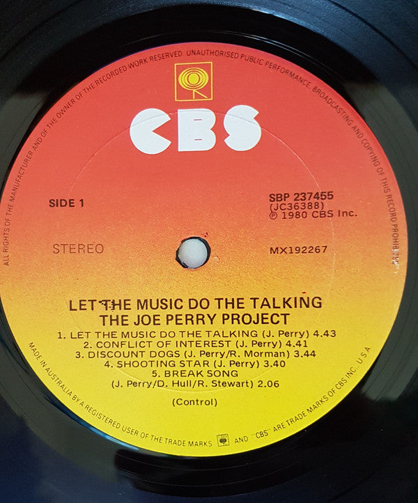 ARTIST: The Joe Perry Project LABEL: CBS CAT: SBP 237455 PRESSING: Australia YEAR: 1980 RPM: 33 FORMAT: 12 DISC/S: 1 GENRE: Hard RockRock STYLE: Hard Rock COVER CONDITION: VG+ VINYL CONDITION: VG+ USED OR NEW: Secondhand