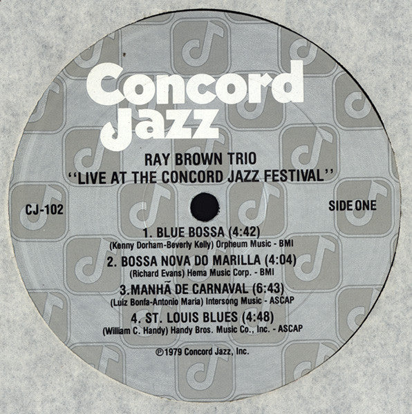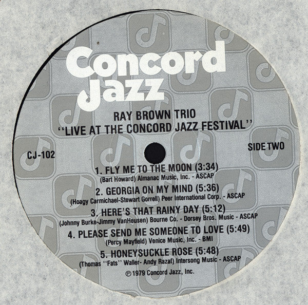 ARTIST: Ray Brown Trio With Special Guest Ernestine Anderson LABEL: Concord Jazz CAT: CJ-102 PRESSING: US YEAR: 1979 RPM: 33 FORMAT: 12 DISC/S: 1 GENRE: Jazz STYLE: COVER CONDITION: VG++ VINYL CONDITION: NM USED OR NEW: Secondhand