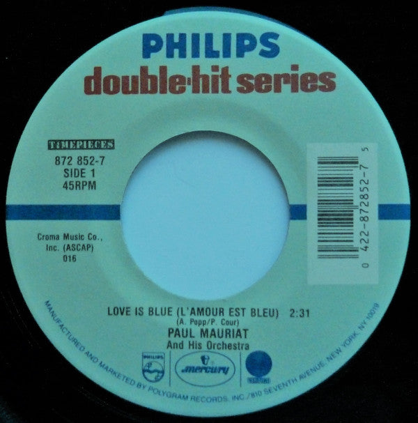 ARTIST: Paul Mauriat And His Orchestra LABEL: Philips CAT: 872 852-7 PRESSING: US YEAR: 0 RPM: 45 FORMAT: 7 DISC/S: 1 GENRE: Pop STYLE: 0 COVER CONDITION: Generic VINYL CONDITION: NM USED OR NEW: Secondhand