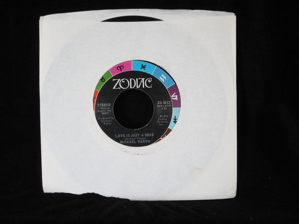 ARTIST: Michael Rabon LABEL: Zodiac CAT: ZS-1012 PRESSING: US YEAR: 1976 RPM: 45 FORMAT: 7 DISC/S: 1 GENRE: Pop STYLE: 0 COVER CONDITION: Generic VINYL CONDITION: VG+ USED OR NEW: Secondhand