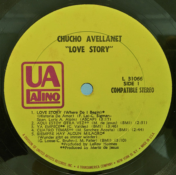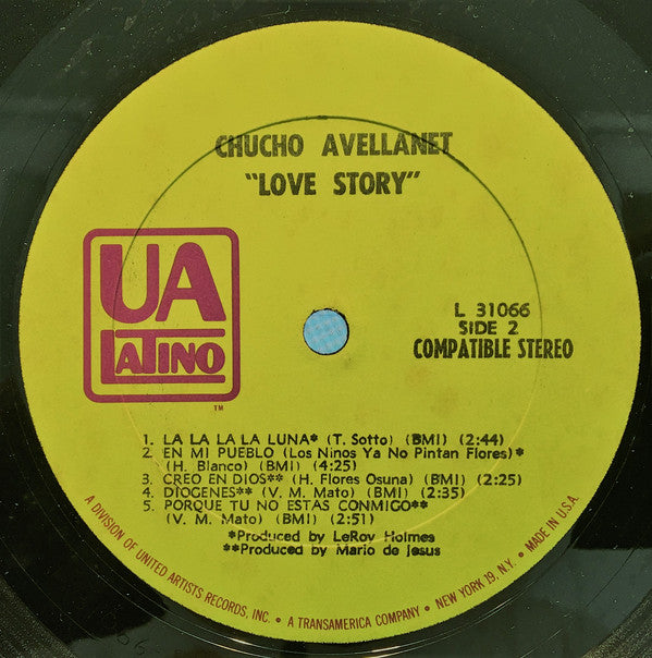 ARTIST: Chucho Avellanet LABEL: UA Latino CAT: L 31066 PRESSING: US YEAR: RPM: 33 FORMAT: 12 DISC/S: 1 GENRE: Latin STYLE: COVER CONDITION: VG+ VINYL CONDITION: VG+ USED OR NEW: Secondhand