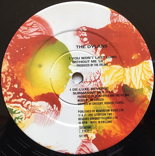 ARTIST: The Dylans LABEL: Situation Two CAT: SIT 90 T PRESSING: UK YEAR: 1992 RPM: 45 FORMAT: 12 DISC/S: 1 GENRE: Indie RockRock STYLE: Indie Rock COVER CONDITION: NM VINYL CONDITION: NM USED OR NEW: Secondhand