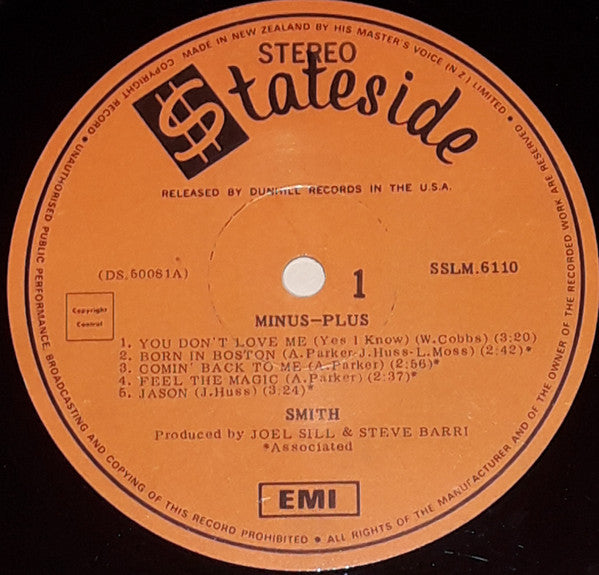 ARTIST: Smith LABEL: Stateside CAT: SSLM 6110 PRESSING: NZ YEAR: 1970 RPM: 33 FORMAT: 12 DISC/S: 1 GENRE: Rock STYLE: COVER CONDITION: VG+ VINYL CONDITION: VG+ USED OR NEW: Secondhand