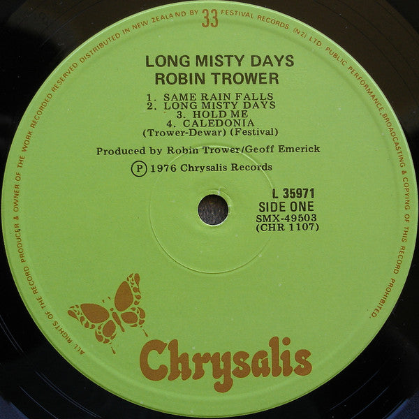 ARTIST: Robin Trower LABEL: Chrysalis CAT: L35971 PRESSING: NZ YEAR: 1976 RPM: 33 FORMAT: 12 DISC/S: 1 GENRE: Blues RockRock STYLE: Blues Rock COVER CONDITION: VG++ VINYL CONDITION: NM USED OR NEW: Secondhand