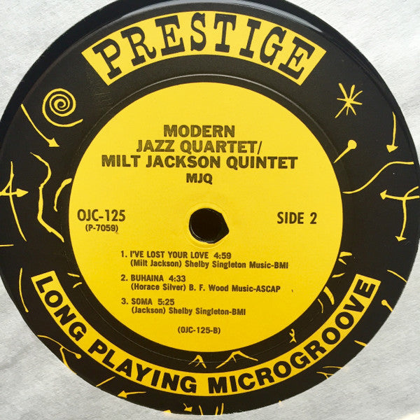 ARTIST: Modern Jazz Quartet / Milt Jackson Quintet LABEL: Original Jazz Classics CAT: OJC-125 PRESSING: US YEAR: 1984 RPM: 33 FORMAT: 12 DISC/S: 1 GENRE: Jazz STYLE: COVER CONDITION: VG++ VINYL CONDITION: NM- USED OR NEW: Secondhand