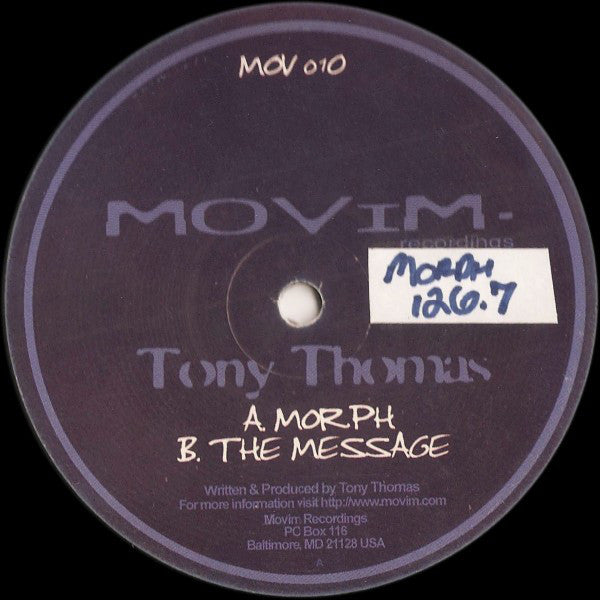 ARTIST: Tony Thomas LABEL: Movim Recordings CAT: MOV 010 PRESSING: US YEAR: 2004 RPM: 33 FORMAT: 12 DISC/S: 1 GENRE: ElectronicaHouse STYLE: House COVER CONDITION: Generic VINYL CONDITION: VG+ USED OR NEW: Secondhand