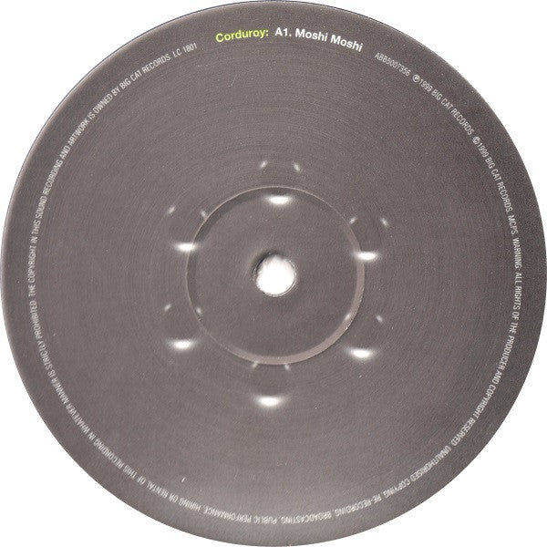 ARTIST: Corduroy LABEL: Big Cat CAT: ABB5007356 PRESSING: UK YEAR: 1999 RPM: 45 FORMAT: 12 DISC/S: 1 GENRE: Acid JazzElectronica STYLE: Acid Jazz COVER CONDITION: VG+ VINYL CONDITION: VG+ USED OR NEW: Secondhand