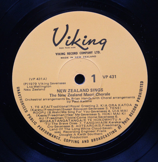ARTIST: The New Zealand Maori Chorale LABEL: Viking CAT: VP431 PRESSING: NZ YEAR: 1979 RPM: 33 FORMAT: 12 DISC/S: 1 GENRE: Folk STYLE: COVER CONDITION: NM VINYL CONDITION: NM USED OR NEW: Secondhand