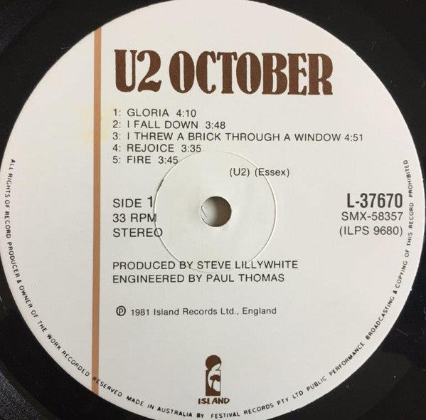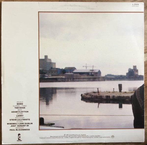 ARTIST: U2 LABEL: Island Records CAT: L 37670 PRESSING: Australia YEAR: 1981 RPM: 33 FORMAT: 12 DISC/S: 1 GENRE: Rock STYLE: COVER CONDITION: NM- VINYL CONDITION: NM USED OR NEW: Secondhand