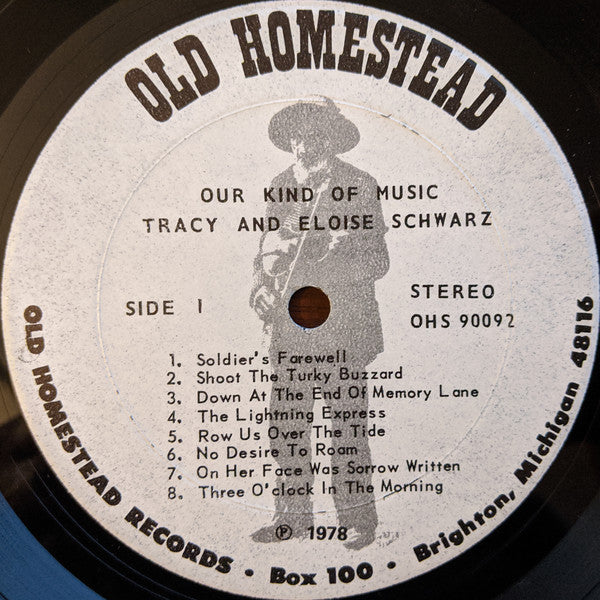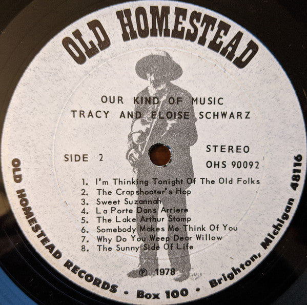 ARTIST: Eloise Schwarz / Tracy Schwarz LABEL: Old Homestead Records CAT: OHS 90092 PRESSING: US YEAR: 1978 RPM: 33 FORMAT: 12 DISC/S: 1 GENRE: BluegrassFolk STYLE: Bluegrass COVER CONDITION: VG++ VINYL CONDITION: VG+ USED OR NEW: Secondhand