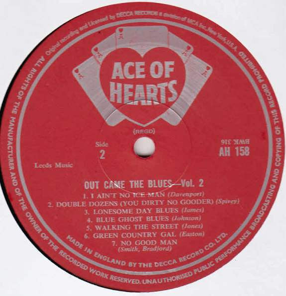 ARTIST: Various Artists LABEL: Ace Of Hearts CAT: AH 158 PRESSING: UK YEAR: 1967 RPM: 33 FORMAT: 12 DISC/S: 1 GENRE: Blues STYLE: COVER CONDITION: VG+ VINYL CONDITION: VG++ USED OR NEW: Secondhand