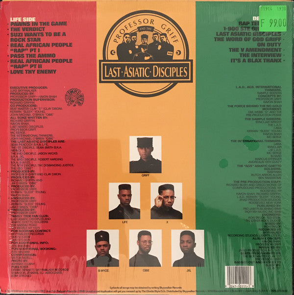 ARTIST: Professor Griff And The Last Asiatic Disciples LABEL: Luke Skywalker Records CAT: GR 111 PRESSING: US YEAR: 1990 RPM: 33 FORMAT: 12 DISC/S: 1 GENRE: Hip Hop STYLE: 0 COVER CONDITION: G+ VINYL CONDITION: G+ USED OR NEW: Secondhand