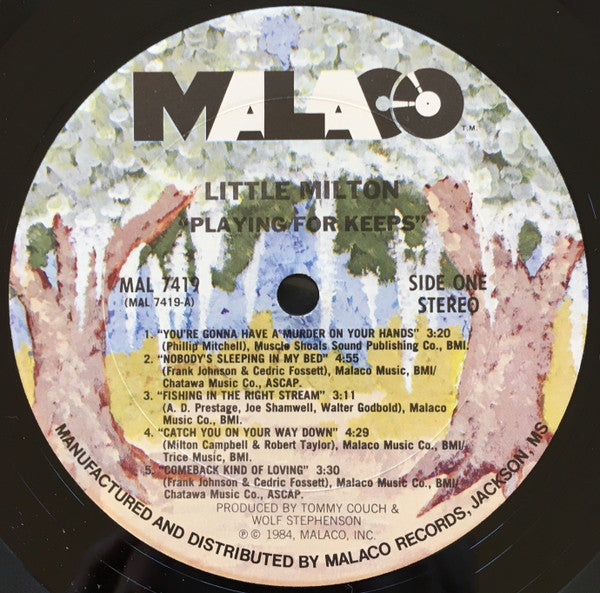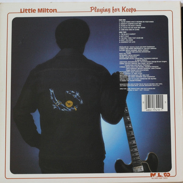 ARTIST: Little Milton LABEL: Malaco Records CAT: MALACO 7419 PRESSING: US YEAR: 1984 RPM: 33 FORMAT: 12 DISC/S: 1 GENRE: Blues STYLE: COVER CONDITION: NM- VINYL CONDITION: NM- USED OR NEW: Secondhand