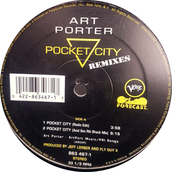 ARTIST: Art Porter LABEL: Verve Forecast CAT: 863 467-1 PRESSING: US YEAR: 1992 RPM: 33 FORMAT: 12 DISC/S: 1 GENRE: Acid JazzElectronica STYLE: Acid Jazz COVER CONDITION: Generic VINYL CONDITION: NM USED OR NEW: Secondhand