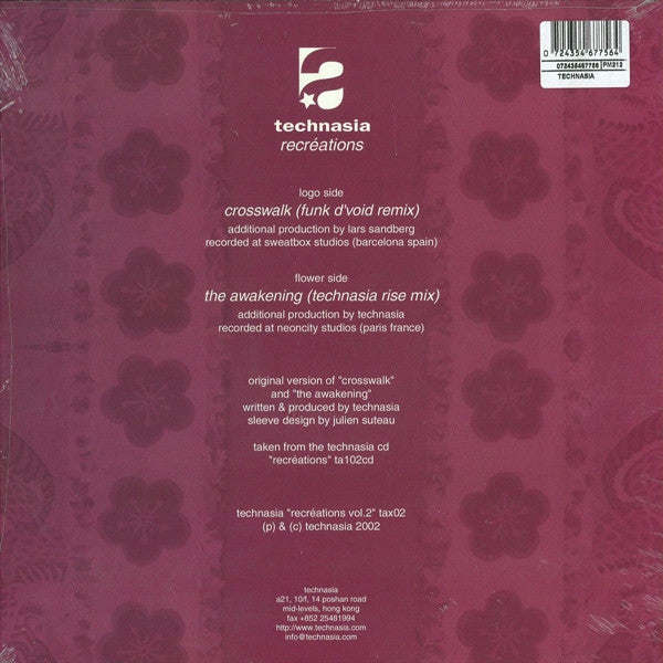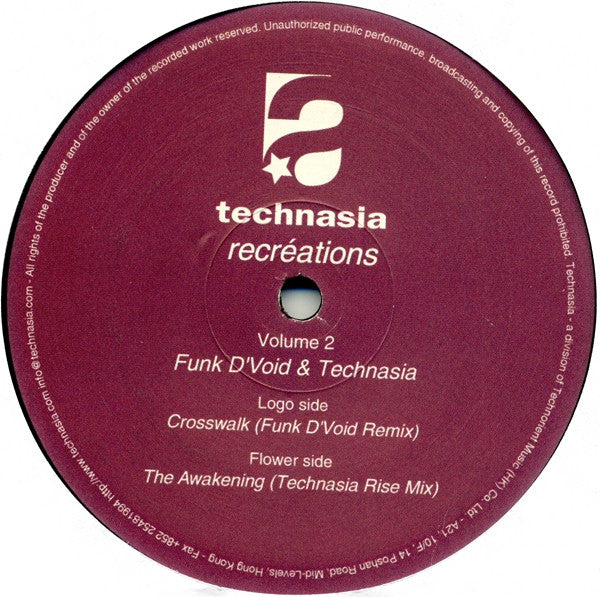 ARTIST: Technasia LABEL: Technasia CAT: TAXX02 PRESSING: Hong Kong YEAR: 2002 RPM: 45 FORMAT: 12 DISC/S: 1 GENRE: ElectronicaTechno STYLE: Techno COVER CONDITION: VG+ VINYL CONDITION: VG+ USED OR NEW: Secondhand